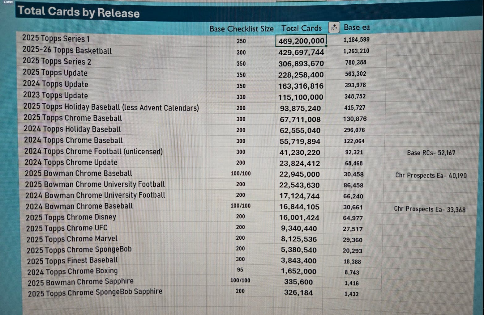 Started pulling together a quick table on recent card-production figures and thought it would be fun to treat it like my own little “Star in a Reasonably Priced Car” board from old-school Top Gear (the Clarkson/May/Hammond era, of course). I’ll keep adding to it as new data comes in...could end up getting pretty extensive.